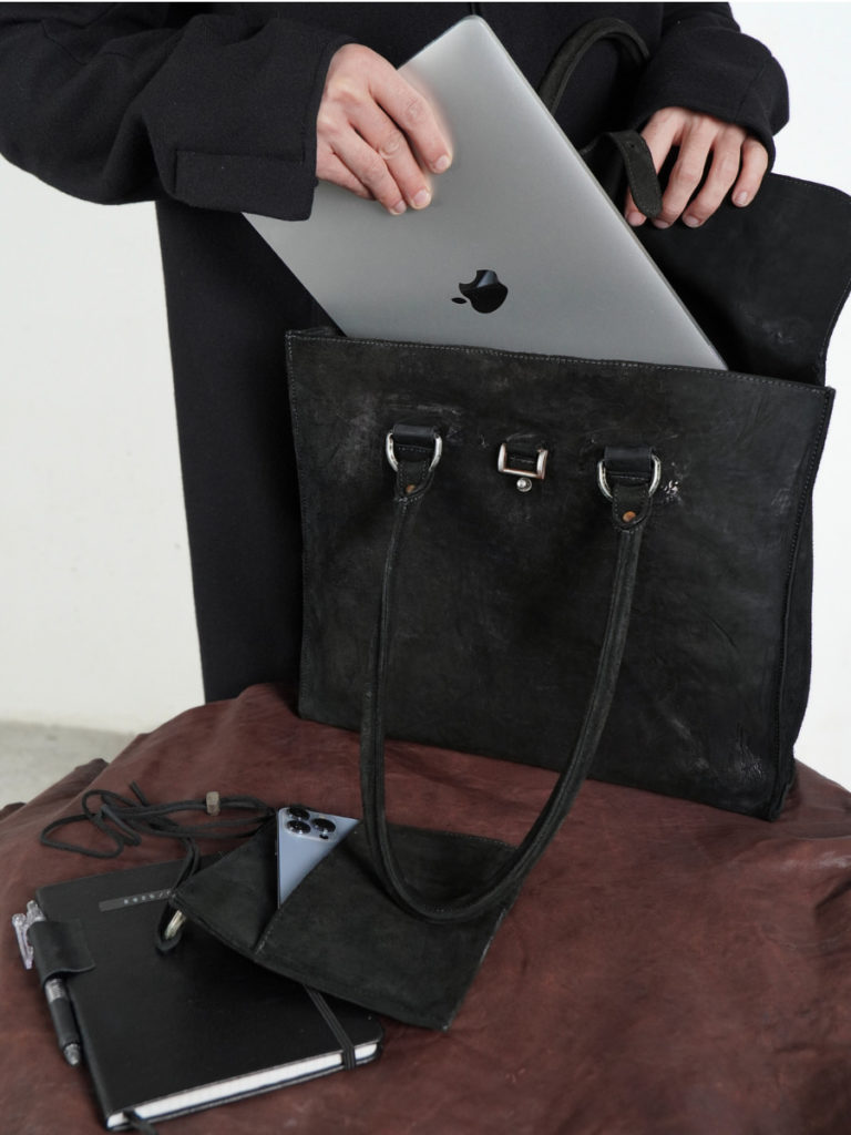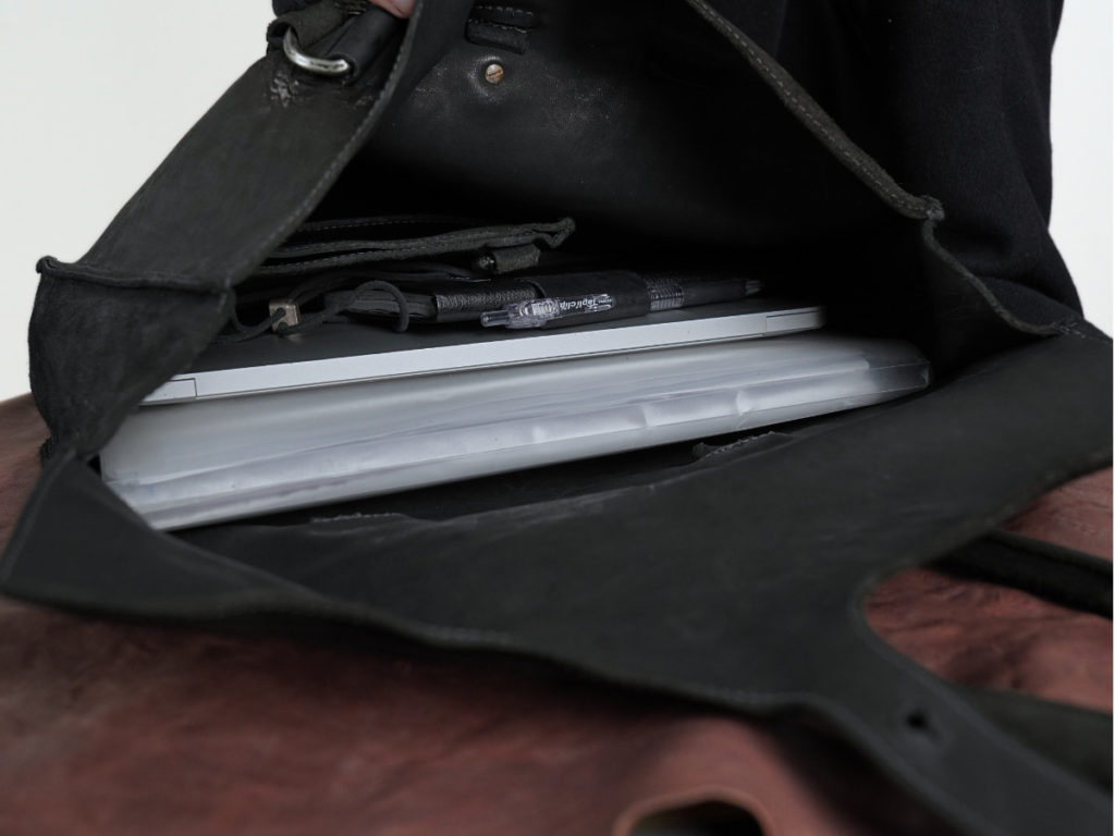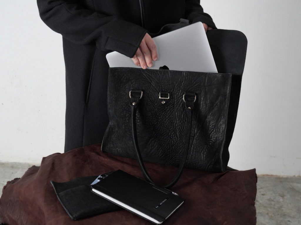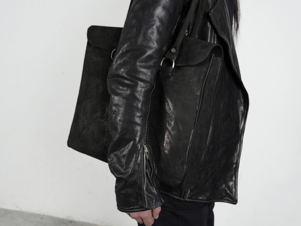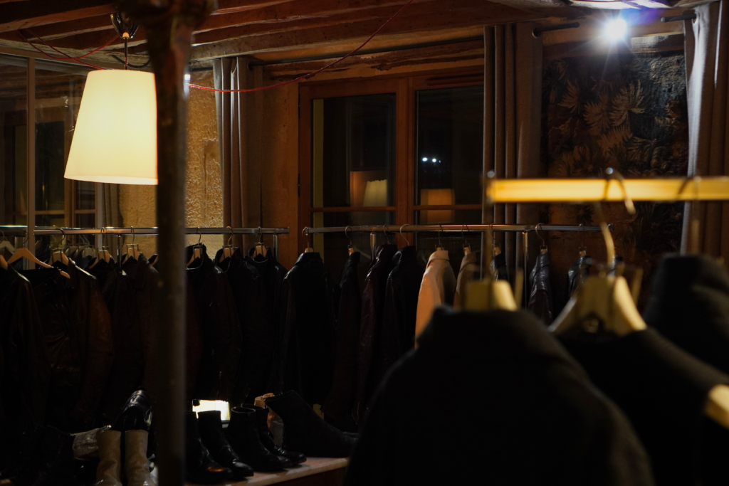 空っぽだった部屋に革の匂いと、服の陰影が重なりはじめる。
