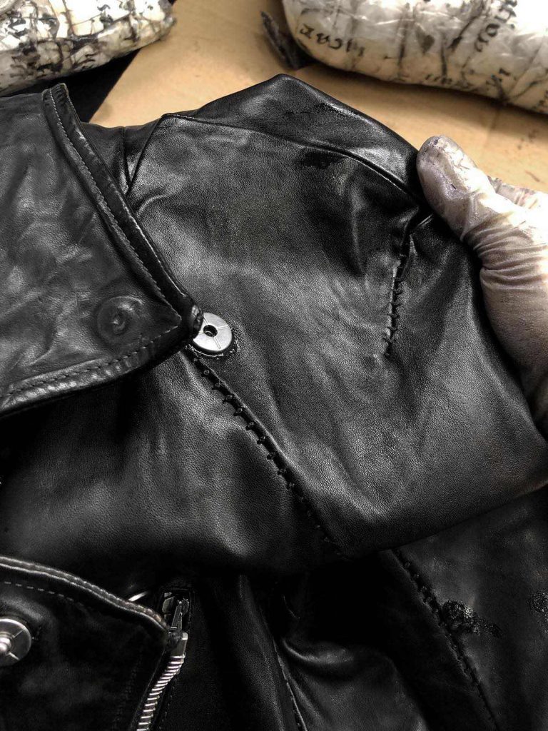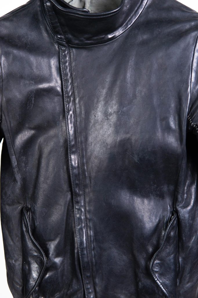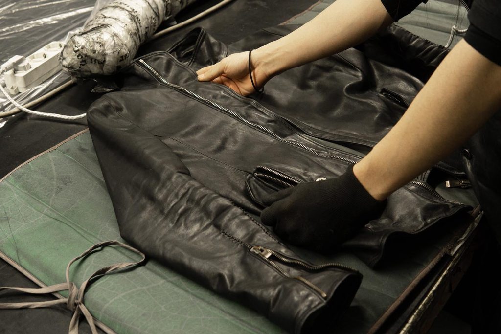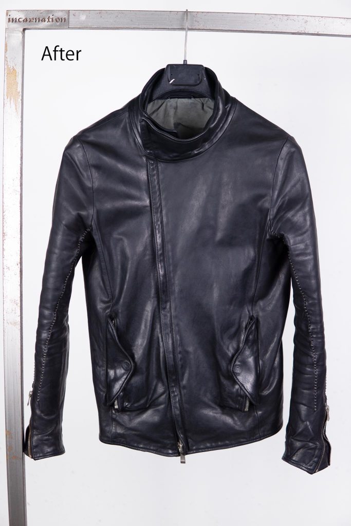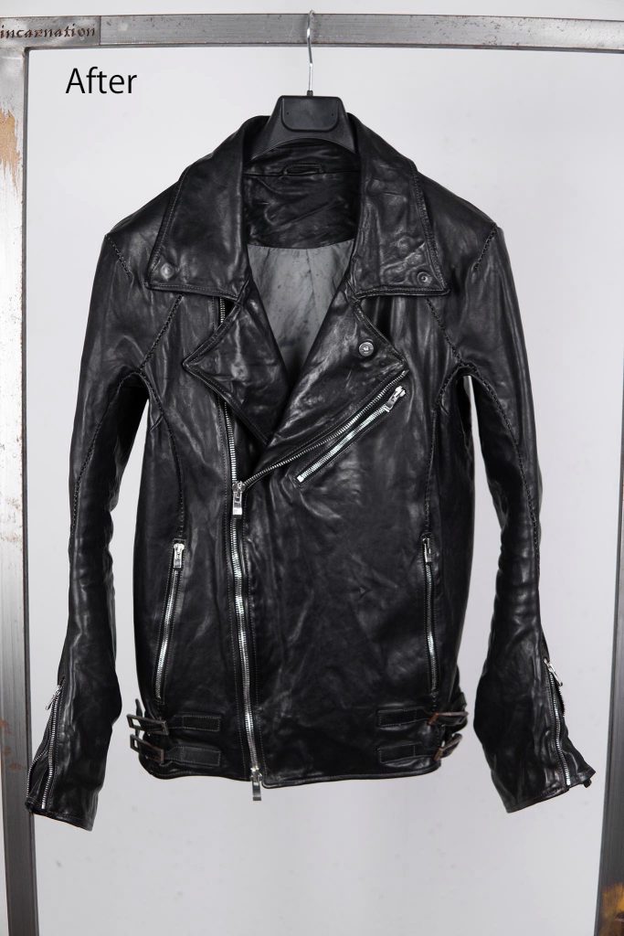 これらの色補正・乾燥・熱加工の3段階のプロセスを得て、ケアが終わったライダースがこちらになります。