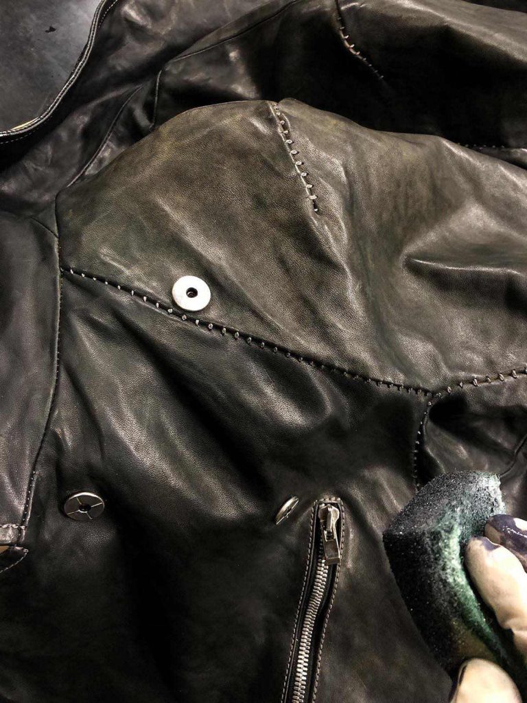 incarnationにおけるレザーのお手入れを2種類の違ったケースのウェアを用いて、その工程を紹介します。