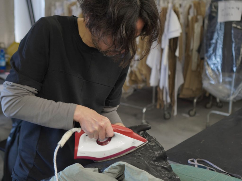 このダブルライダースに関しては、襟部分のディテールにincarnationのダブルライダースのこだわりが詰まっている箇所なので、しっかりとハリと立体感が生まれるように意識して作業を行います。