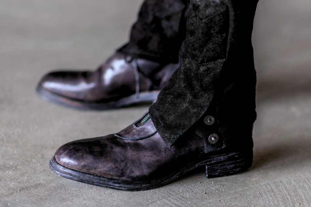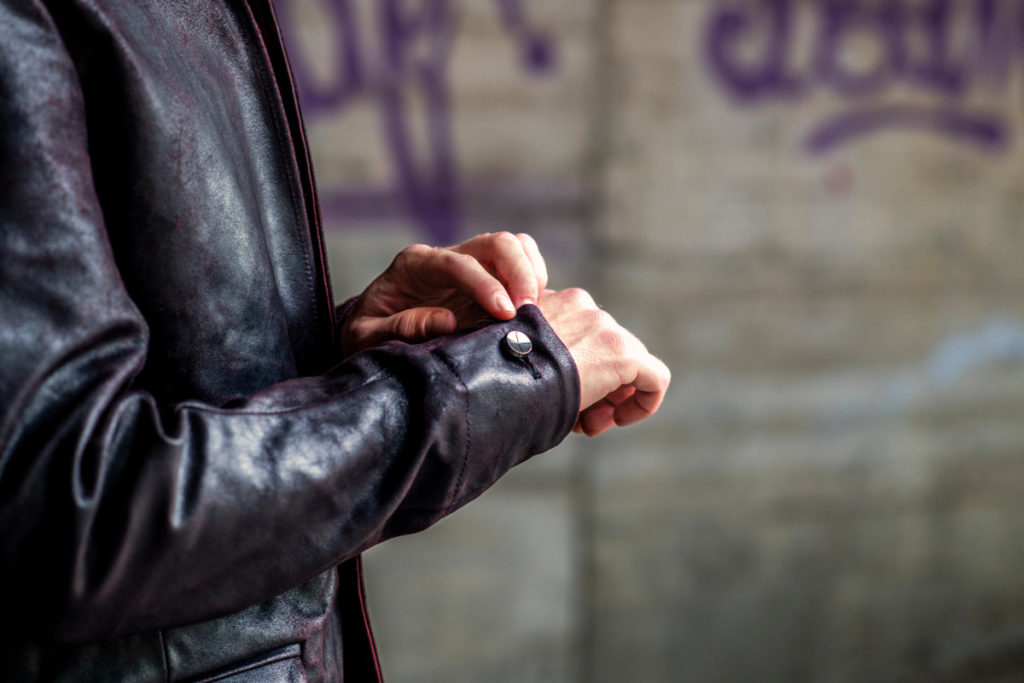 コードバン層のマットな質感のなかに、革本来の繊維が浮かび上がる艶感。