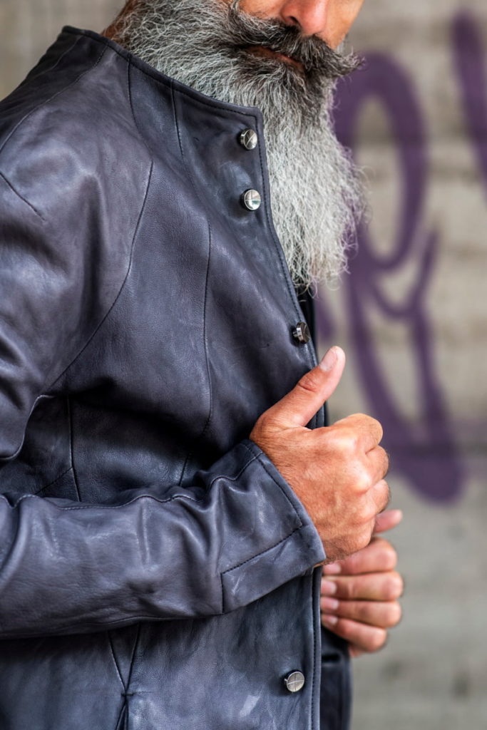CABANEオーナー・岡野様は、レザーを軸にしながら型にはまらない自由なスタイルを楽しんでおられる方です。トラッドからモードまで、ジャンルを超えてアイテムを取り入れながら、全体のバランスで魅せる独自のスタイリングを提案しています。