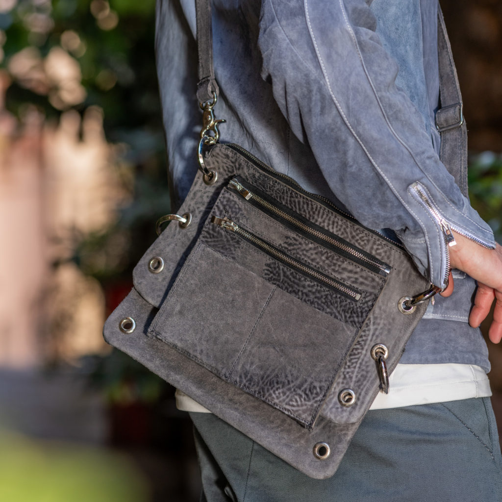 今回使用したのは、また異なる表情を持つホースバットレザーに製品染め加工を施したバック。