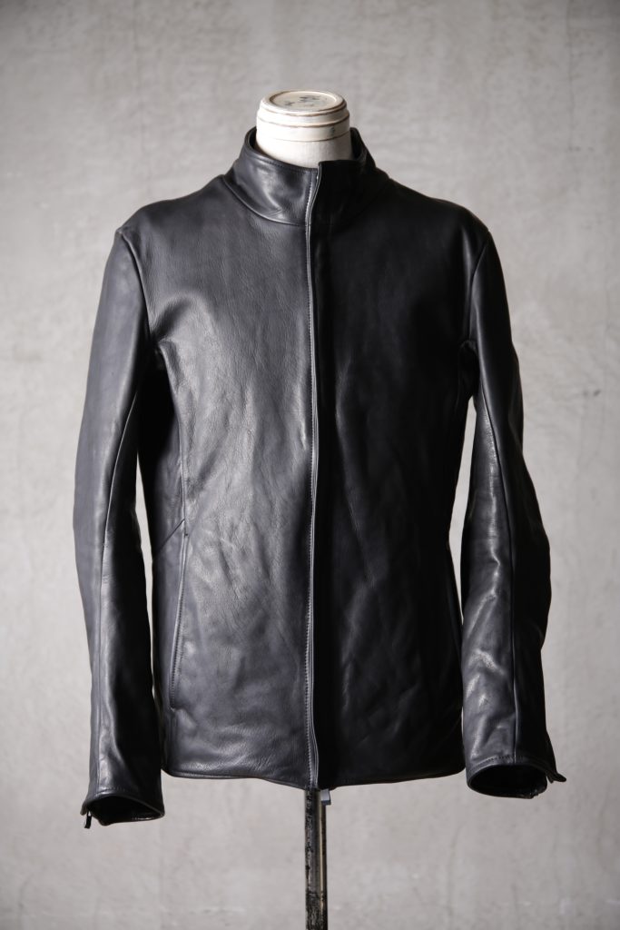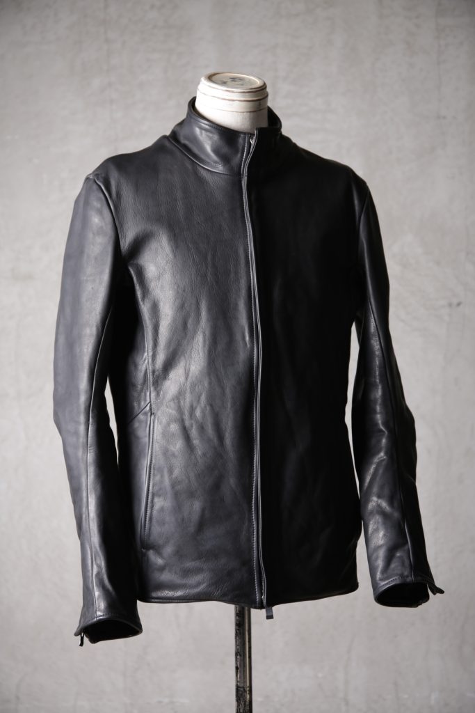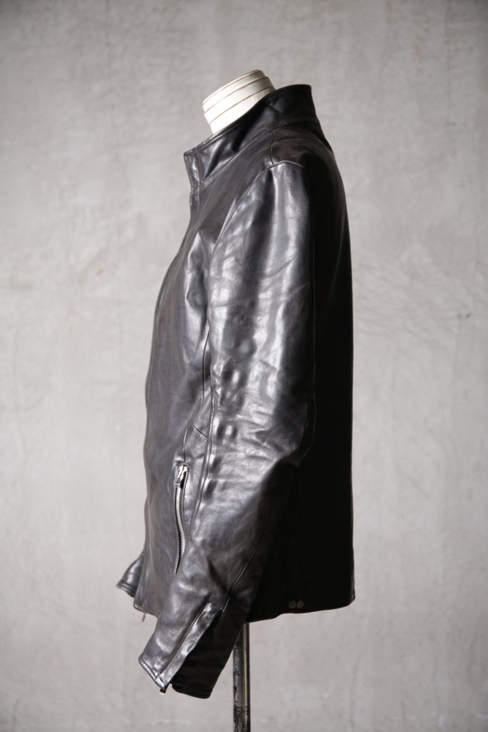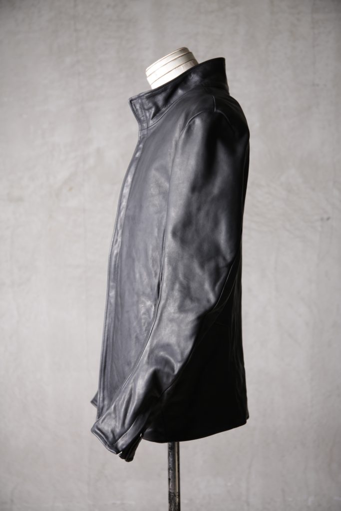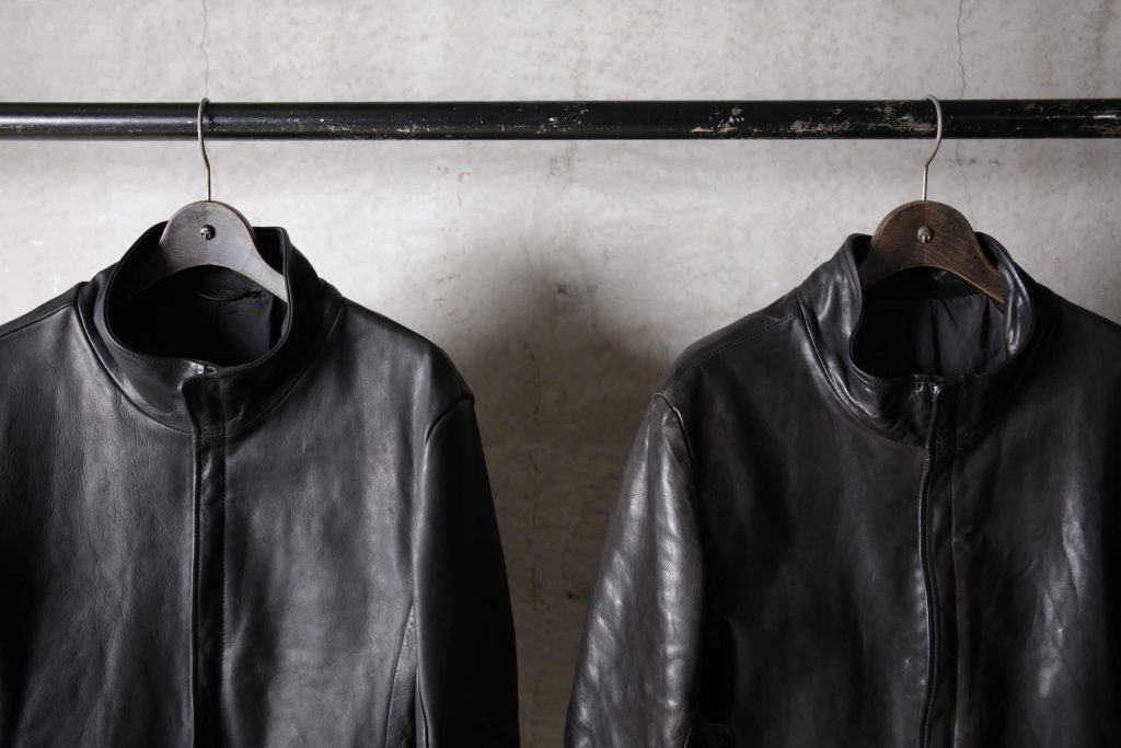 今回は、25SSコレクションで展開されている厚みのあるシープレザーブルゾン3型のうち、最後のひとつとなるスタンドカラーモトジャケットの紹介をいたします。