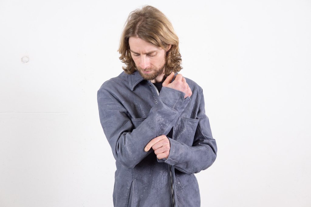 会場では、デザイナー自身が長年愛用している私物のレザーブルゾンを展示いたします。
