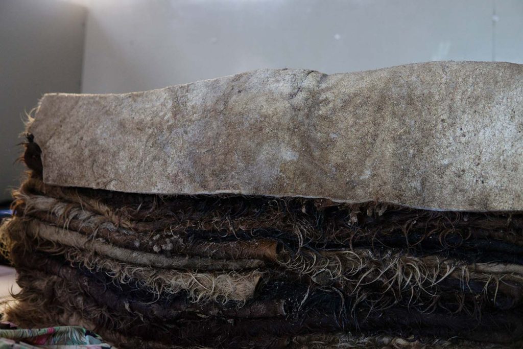 乾いたあとの革は少し硬くなっていることもあるので、“軽くほぐす”くらいの気持ちで揉んであげると、革がまたしなやかに戻ります。