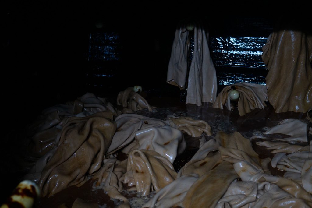 まだ湿っているうちに揉んでしまうと、銀面(革の表面のツヤのある部分)が擦れてしまったり、最悪剥がれてしまうことがあります。