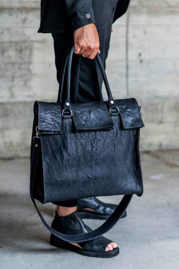 そして、見た目の迫力からは想像できない軽さ。あえて素材を通常のバッグに使用するレザーより薄くすることで得られる使いやすさを考慮しています。