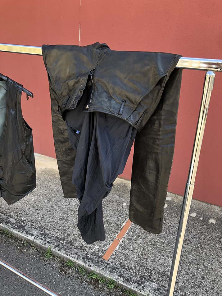 設営を終えて、会場に並んだコレクションから、まず感じたのはやはりレザーの存在感。