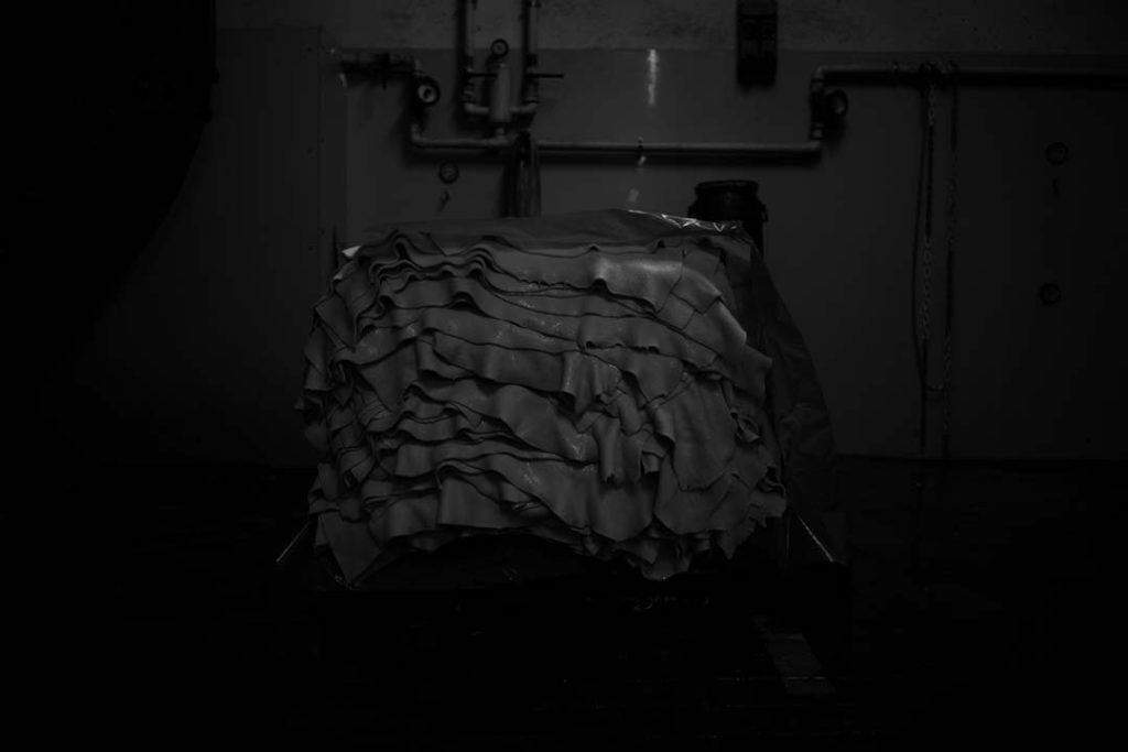 装飾や情報量を極限までそぎ落とすことで、ベビーカーフが持つ 質感・艶・陰影 がストレートに立ち上がり、素材そのものの魅力をダイレクトに感じられる構造になっています。