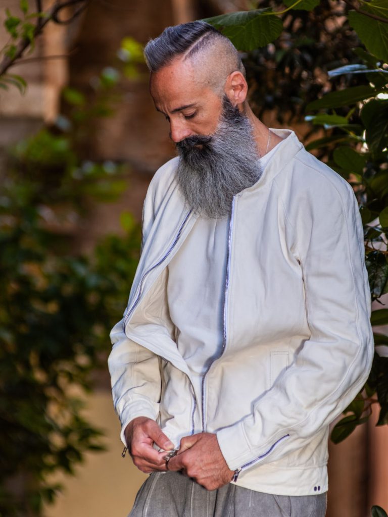 #1のコーディネートが「男らしさを強調する」スタイルだとすれば、こちら全体のシルエットで魅せるスタイル。