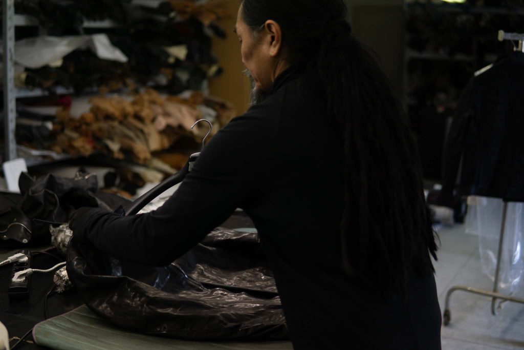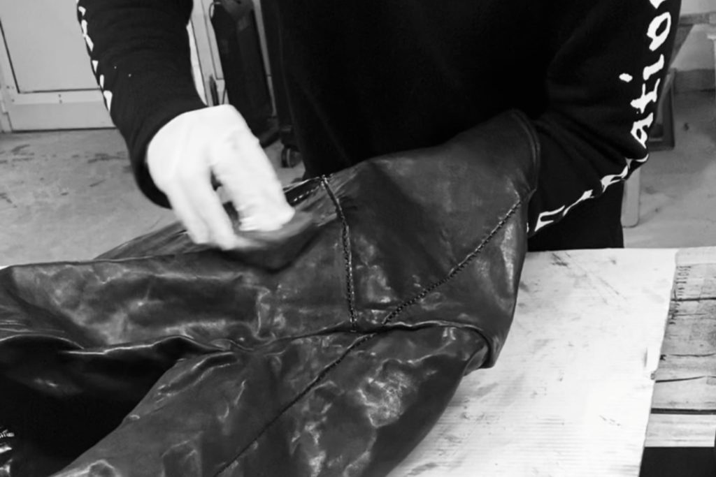 この仕上げの面白さは、経年変化の現れかたが、一般的なスウェードとは逆であること。