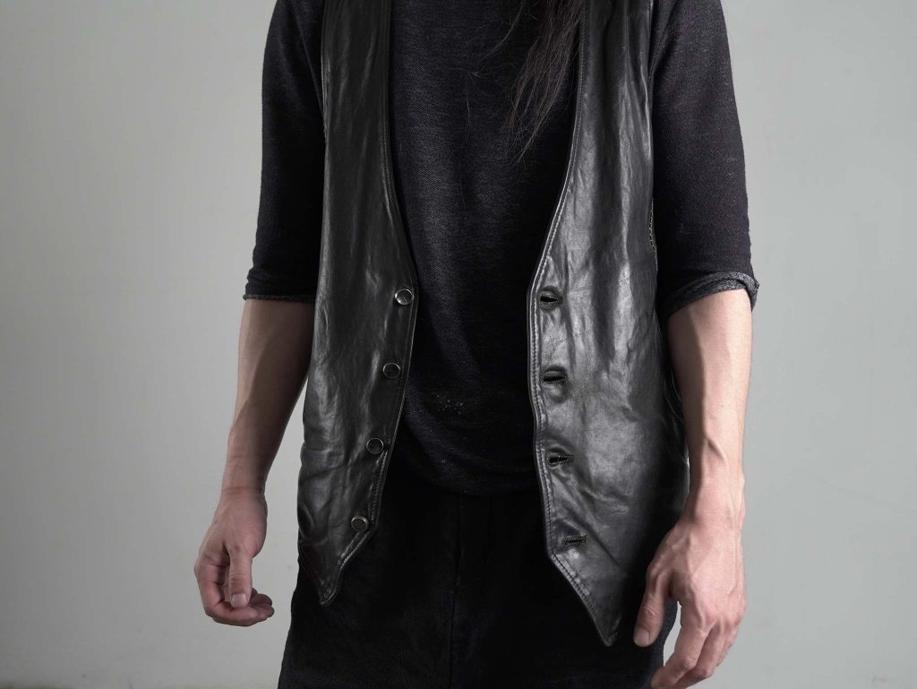 詳細はこちらから▶︎https://store-jp.incarnation.jp/products/heavy-weight-sheep-leather-high-collar-zip-vest-lined-hv-1