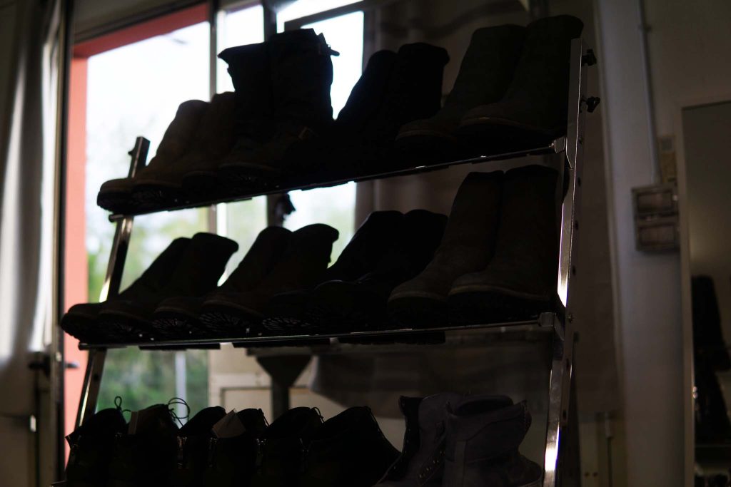 しかし角度や光の当たりかたによって、革の中に潜む濃淡が浮かび上がり、スウェードでありながら、どこか締まった佇まいを見せます。