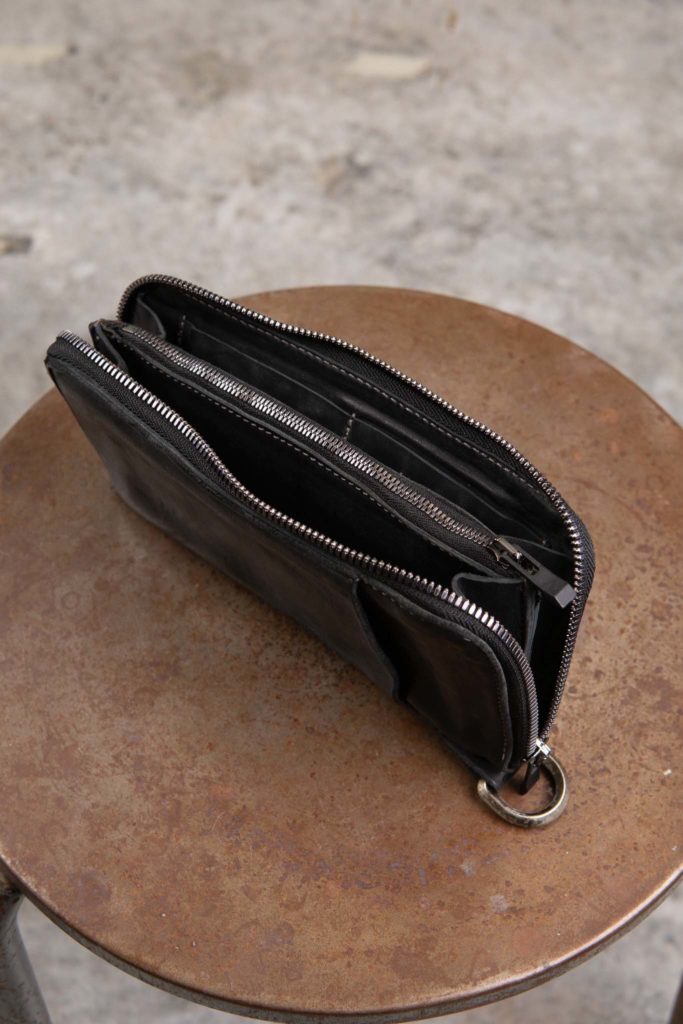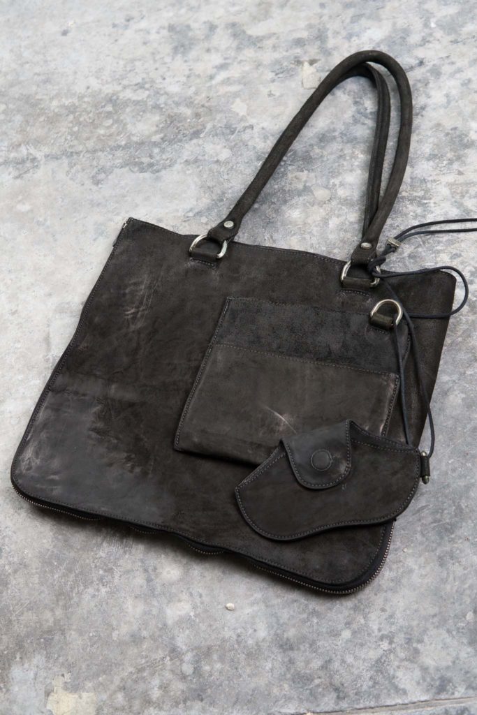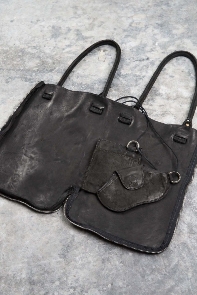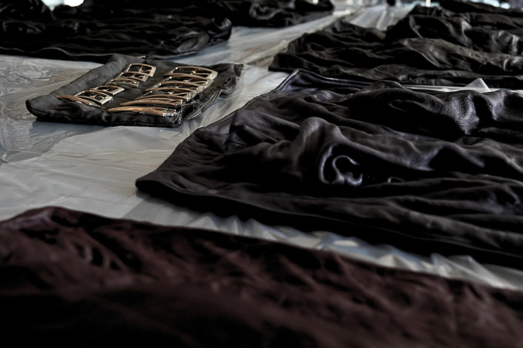 空っぽだった部屋に革の匂いと、服の陰影が重なりはじめる。